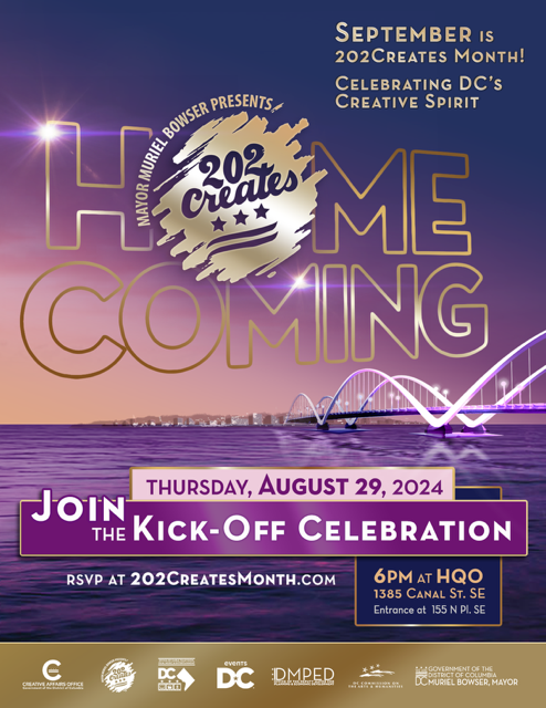 Join Mayor Muriel Bowser and 202Creates for the exciting kickoff of 202Creates Month as we proudly present "Homecoming: Celebrating DC’s Creative Spirit!"