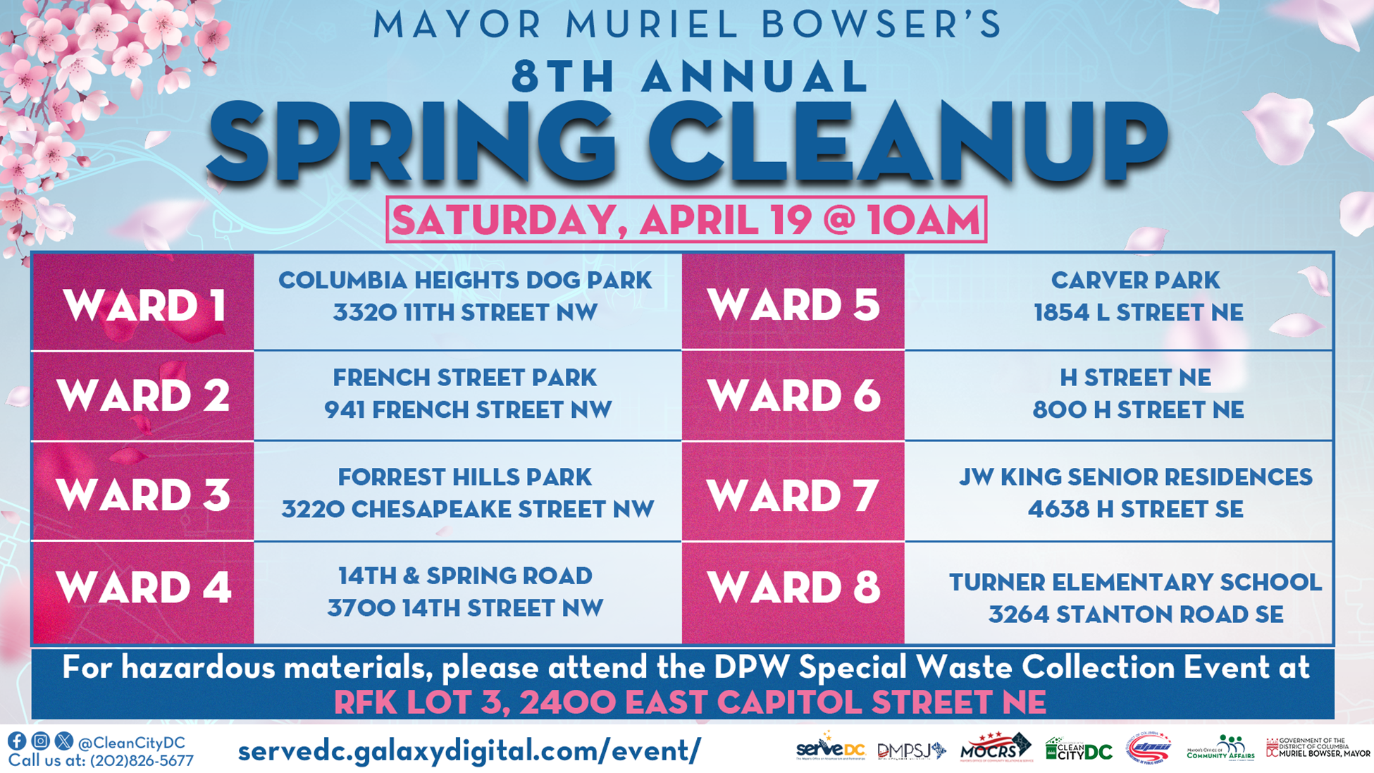 The month of April presents organizations, individuals, and communities with the unique opportunity to take action across the district for Earth month. Mayor Muriel Bowser calls on all DC residents to get out and help keep DC trash free by participating in one of our 8 Districtwide cleanups. You can participate individually, with your family, or host a small group with your friends and neighbors!